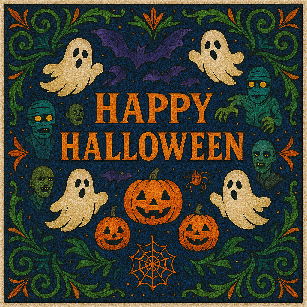 On Halloween night, the moon was bright and friendly pumpkins lit the way. Little ghosts giggled as bats twirled in the sky. A kind witch flew by, dropping candy for everyone. Spiders spun sparkly webs, and friendly skeletons danced to the beat of the wind. Kids in costumes laughed together, coloring their magical mandalas that came to life with every crayon. Halloween wasn’t spooky—it was a night of fun, friends, and imagination!